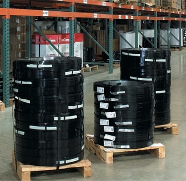 Durable steel strapping solutions for securing products on pallets, ensuring safe and efficient cargo transport.
